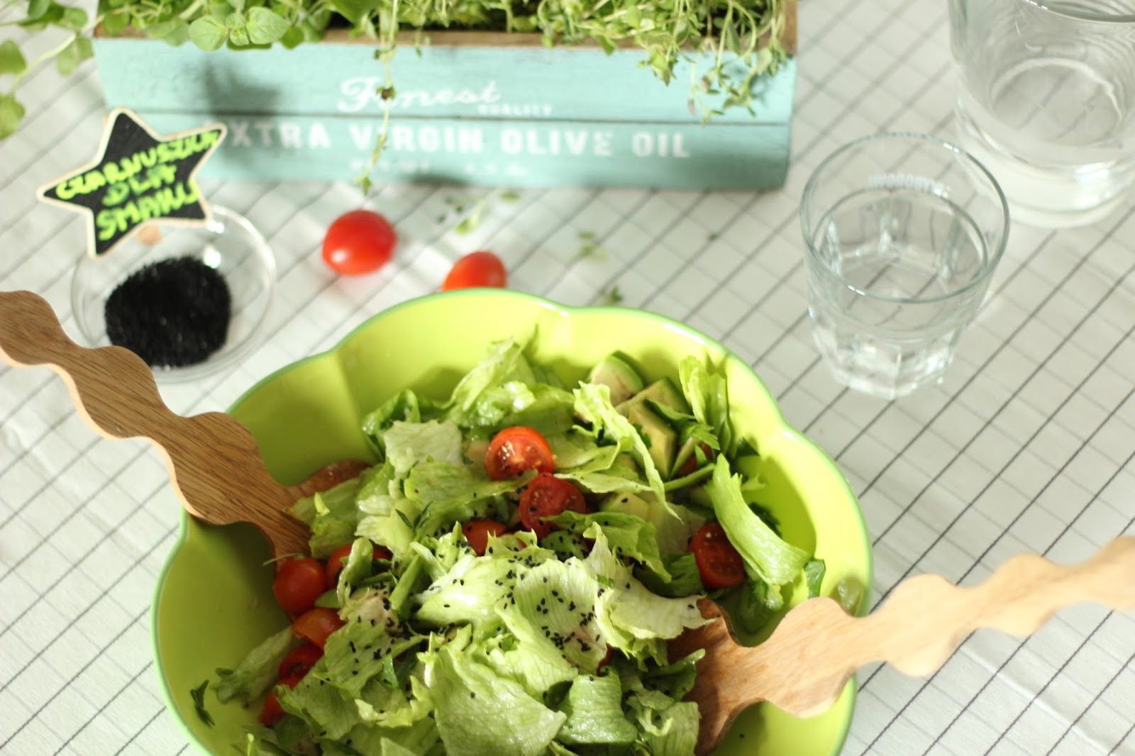 Pokrojone w kostkę awokado mieszamy ze wszystkimi składnikami. Wszystko skropić oliwą oraz sokiem z cytryny i posypać czarnuszką dla smaku. Smacznego!