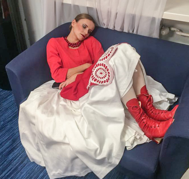 Tak było po wczorajszej premierze… a jak było przed? Rozlana woda na kostiumie i szybka interwencja suszarki!
