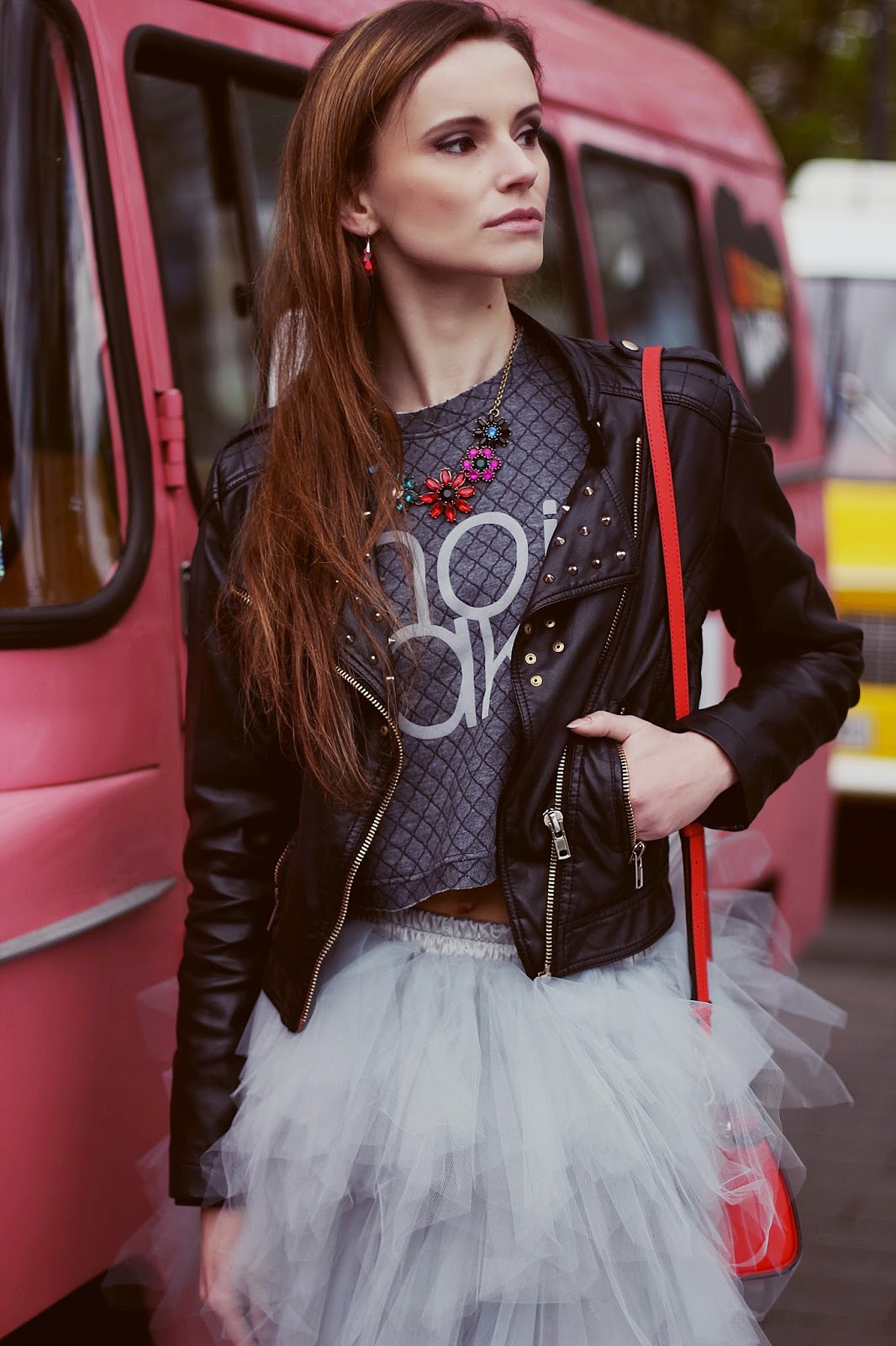 W dzisiejszym poście, nawiązując do rockowego wstępu, chciałam Wam zaprezentować stylizację na rockowo we współpracy z marką MetkaBaletka! W takiej odsłonie doskonale czułabym się na którymś z wyżej wymienionych koncertów (choć na letnie festiwale w plenerze wybrałabym jednak trampki…). Autorką zdjęć jest także Kasia Banaszek. Tym razem tiulowa spódnica od No.i.Jak trochę się postrzępiła, a to dało fale możliwości w stworzeniu niepowtarzalnego outfitu. Po dodaniu klasycznej, skórzanej ramoneski od razu otrzymujemy charakterystycznego pazura.