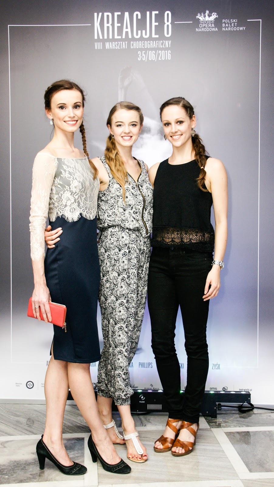 Kreacje są zawsze stresującym doświadczeniem, nie tylko ze względu na występ na scenie, ale przede wszystkim, ponieważ jest to przedsięwzięcie organizowane w pełni przez tancerzy Polskiego Baletu Narodowego (przy niezbędnej pomocy działu marketingu czy literackiego Teatru w finalnych decyzjach), dlatego kiedy pierwszy spektakl dobiegnie końca zawsze czuję ulgę! Przez to całe zamieszanie nie miałam zupełnie czasu do namysłu co na siebie włożyć? Nie kombinując długo, przed wyjściem z domu w dzień premiery sięgnęłam do szafy po sukienkę, którą kupiłam na ślub mojej przyjaciółki. Zapomniałam o butach, ale w garderobie znalazły się jakieś w miarę wyględne 😛