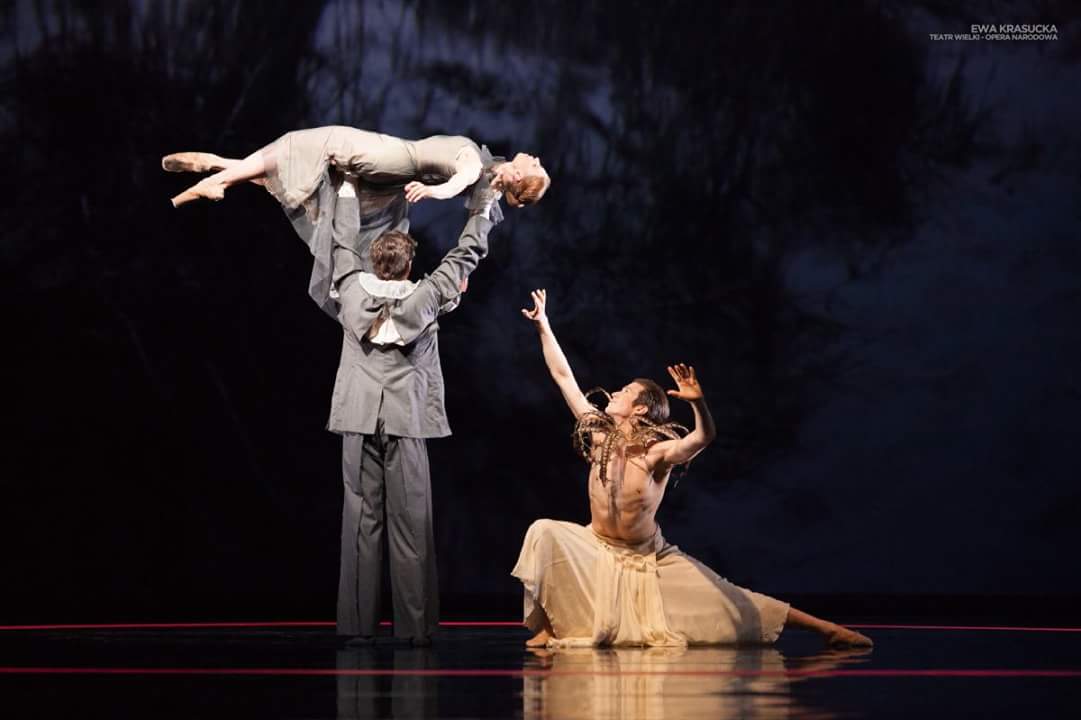 Drugą postacią, która mnie porwała był Caliban w wykonaniu znakomitego polskiego I solisty, Dawida Trzensimiecha. Po nim najbardziej chyba było widać psychologiczne zgłębienie charakteru tejże postaci, tak szalenie istotne przy dramatach Shakespeare’a. Pewność siebie, strach, obrzydzenie, radość, podniecenie- to wszystko można było wyczytać nie tylko z samej twarzy, ale z całego ciała. Przemyślane gesty, pozy, świadoma praca ciała, porażający indywidualizm. Byłam zachwycona. Wraz z Dagmarą stworzyli piękny duet.