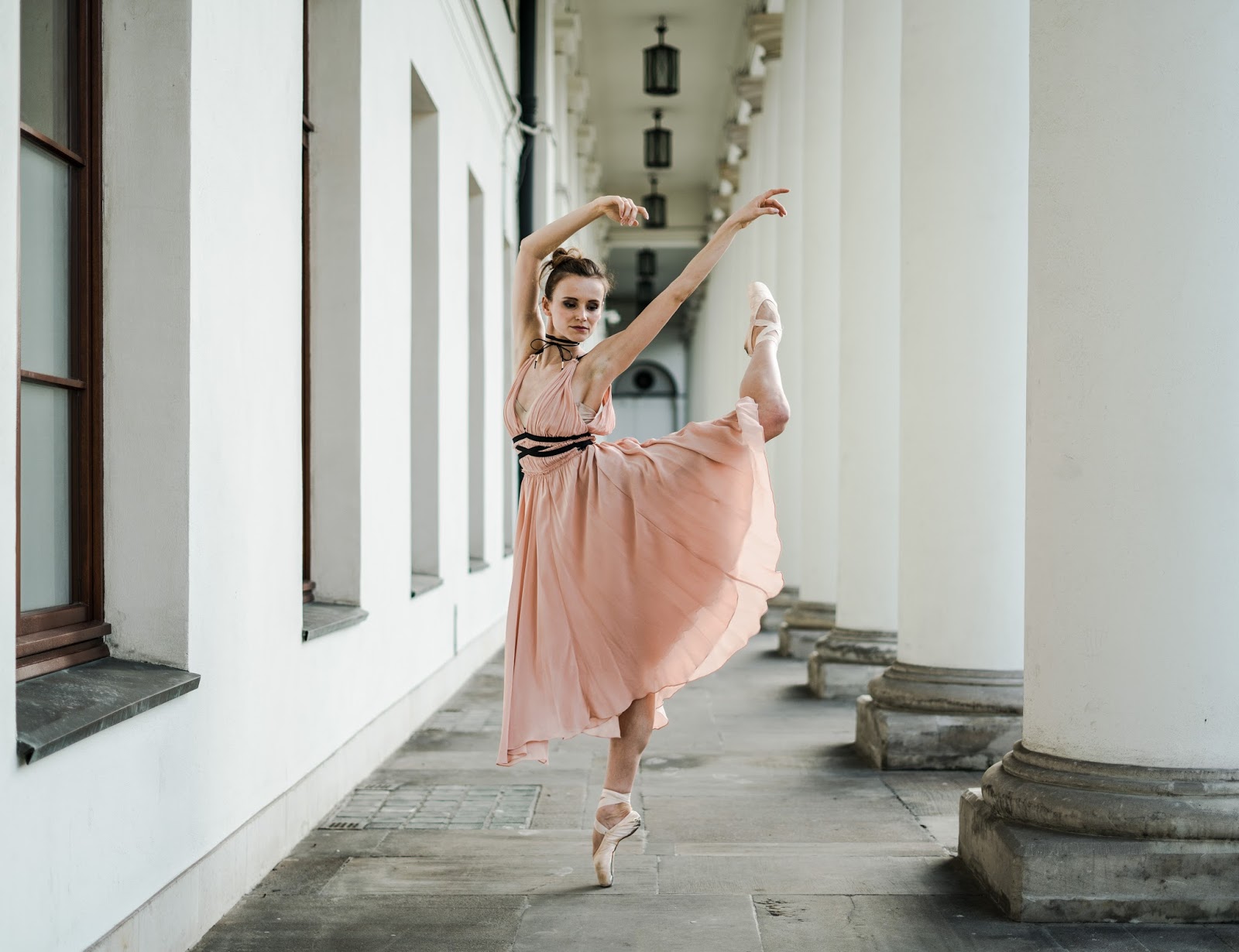 Znów wiosna (z przerwami na jesień), znów lato za pasem. Najnowsze kolekcje projektantów i sieciówek na sezon SS17 zalały atelier i sklepy. Przeglądając niedawno fejsbukowy fanpage polskiego magazynu Elle trafiłam na artykuł o najnowszej kolekcji ZARA Studio. Ta najpopularniejsza na świecie sieciówka, śledząca najgorętsze trendy sezonu z prędkością światła, znów wyprodukowała kolekcję inspirowaną baletem! Pod koniec wakacji zeszłego roku była to skromna kolekcja sportowa, ale teraz to autonomiczny, pełnowymiarowy asortyment. Czym prędzej przeskoczyłam do strony sklepu. Moją uwagę przykuła delikatna, zwiewna, pudrowo-różowa sukienka o długości midi, z czarnymi zdobieniami. Mój cel był jeden. Sprawdzić w jaki sposób właśnie ta sukienka sprawdzi się w wiosennej stylizacji, a następnie czy będę w stanie wykorzystać ją w tańcu. Co do drugiej opcji sprawdziła się doskonale, a pierwsza? Jak Wam się podoba moja stylizacja tej delikatnej dziewczęcej sukienki? Zdjęcia robiliśmy z Tomkiem pod koniec kwietnia, kiedy pogoda płatała największe figle, stąd moja dość spora, ale niezbyt ciepła kurtka. Zrobienie zdjęć przekładaliśmy chyba cztery razy, w końcu się udało i zdążyliśmy tego dnia przed deszczem!